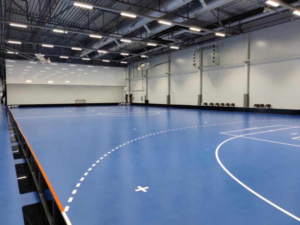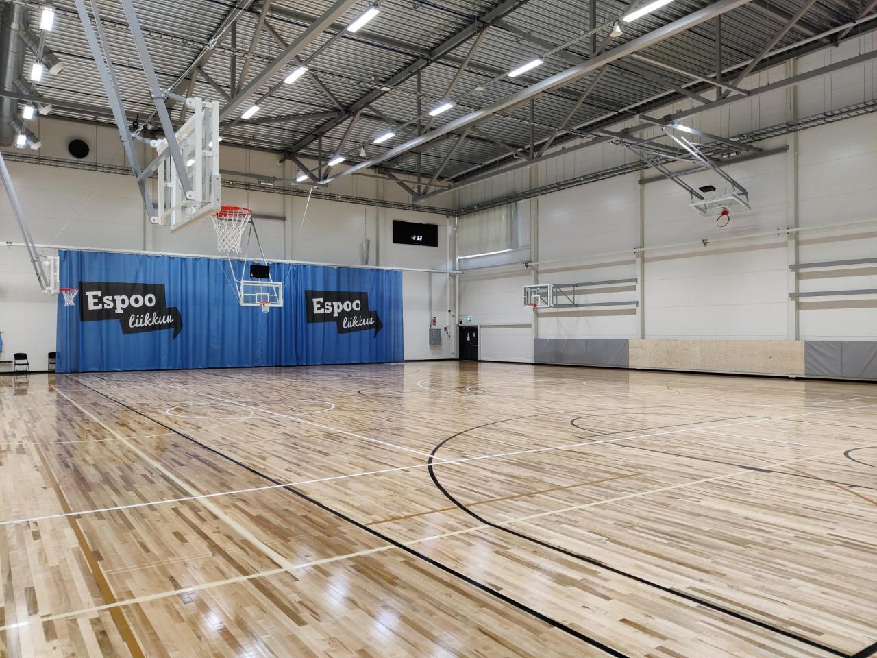 Hallissa on 2 täysimittaista koripallokenttää suoja-alueineen ja 3 täysimittaista salibandykenttää, joissa joustolattiat ja Taraflex-pinta. Kaikilla kentillä voi pelata
